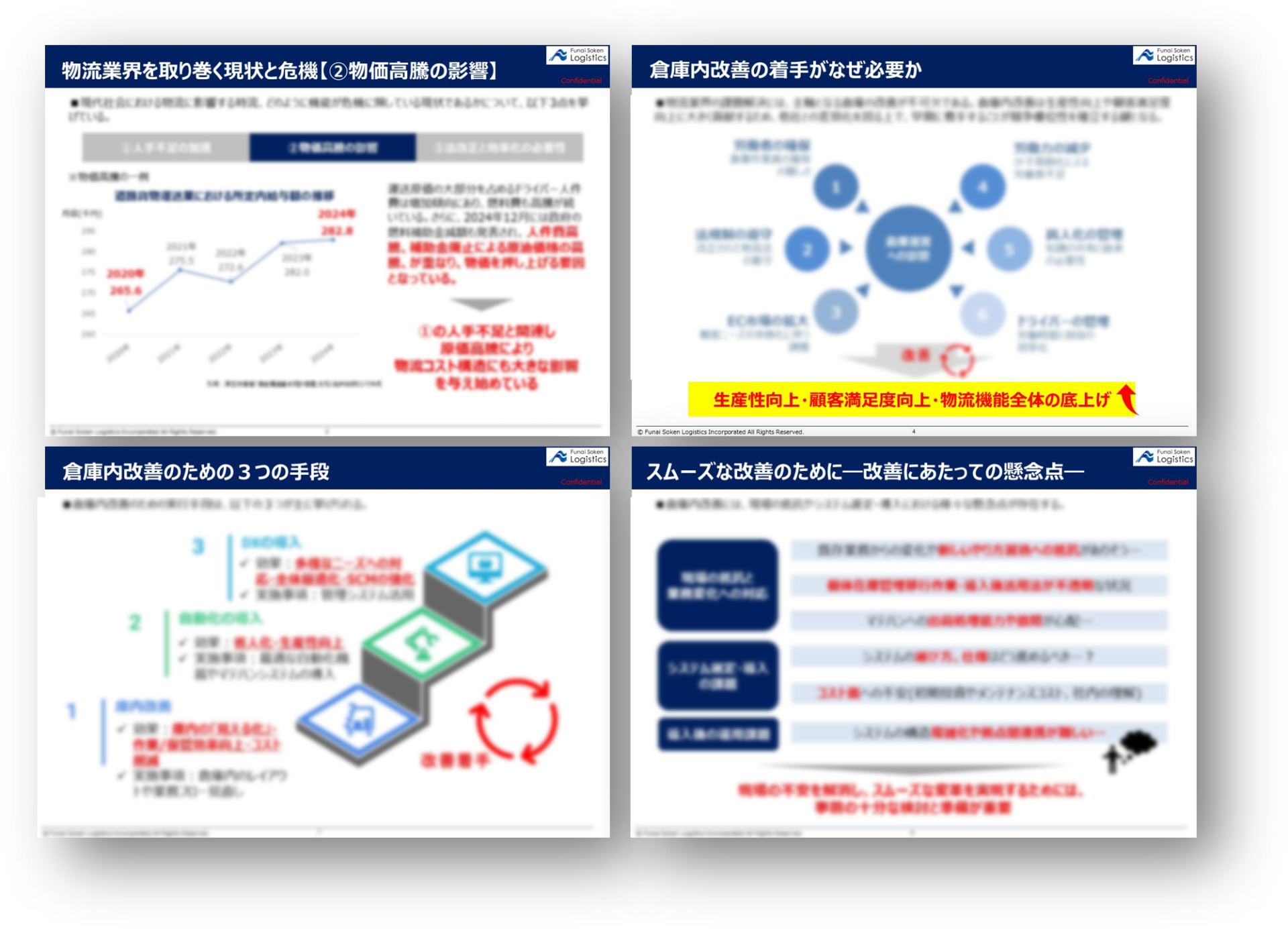 物流業界は今、人手不足、物価高騰、法改正という三重苦に直面しています。この状況下で、企業の物流戦略において倉庫内改善は不可欠です。本資料では、倉庫内改善の重要性から、具体的な改善手段である「庫内改善」「自動化の導入」「DXの導入」までを詳しく解説します 。