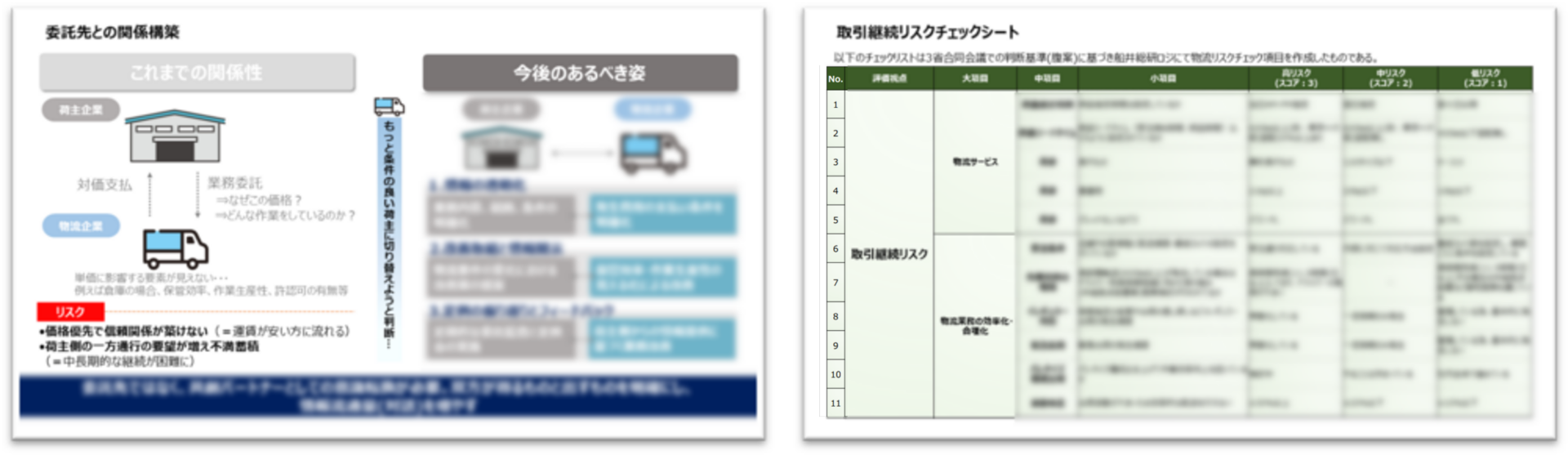 **3省(国交省・経産省・農水省)合同会議での判断基準基づいた、船井総研サプライチェーンコンサルティング独自のチェックリストです**