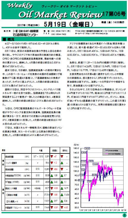 4/27~5/10のNYMEX・WTIは45.52~49.33ドルと軟化し、40ドル台後半で推移した。