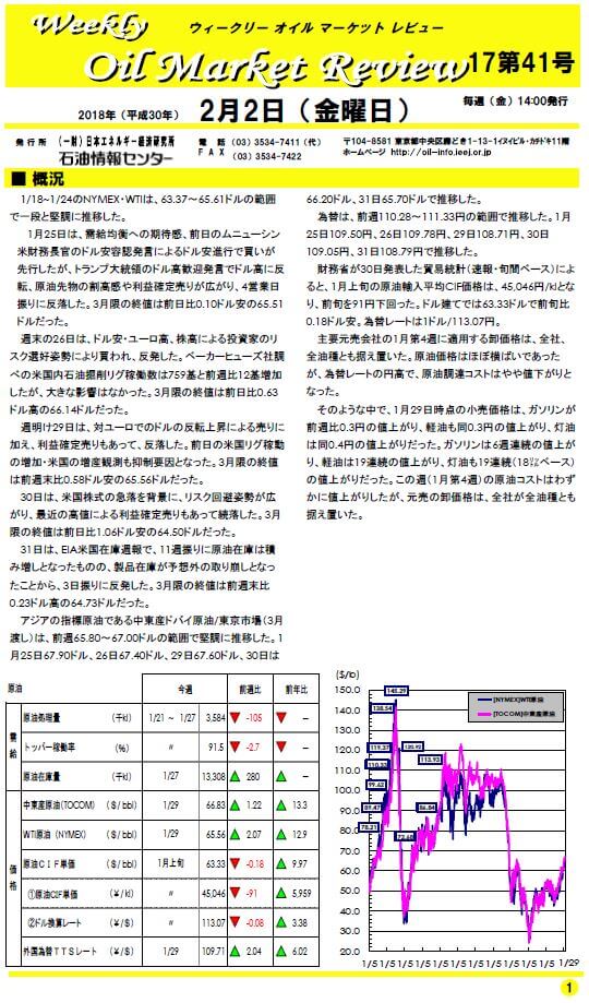 石油に関する情報を様々な形で提供している「一般財団法人日本エネルギー研究所石油情報センター」による、最新石油市場動向に関するプレスリリースです。