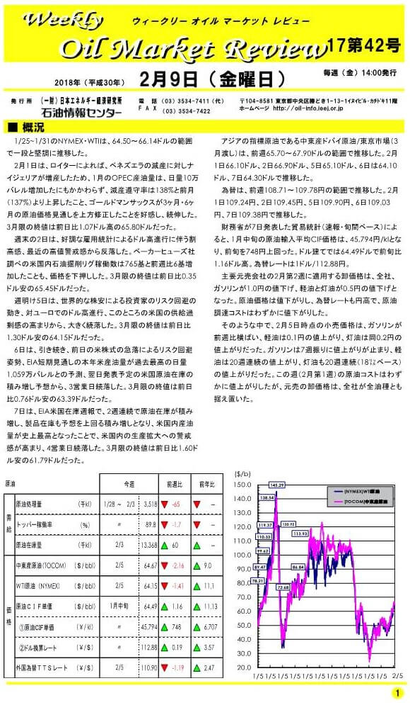 1/25~1/31のNYMEX・WTIは、64.50~66.14ドルの範囲で一段と堅調に推移した。
