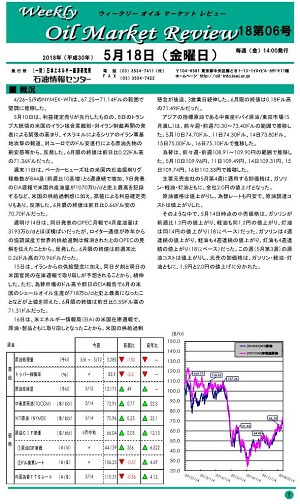 5月10日は、利益確定売りが先行したものの、8日のトランプ大統領の米国のイラン核合意離脱・対イラン制裁再開の発表による緊張の高まり、イスラエルによるシリアのイラン軍基地攻撃の報道、対ユーロでのドル安進行による原油先物の割安感等から、反発した。6月限の終値は前日比0.22ドル高の71.36ドルだった。…