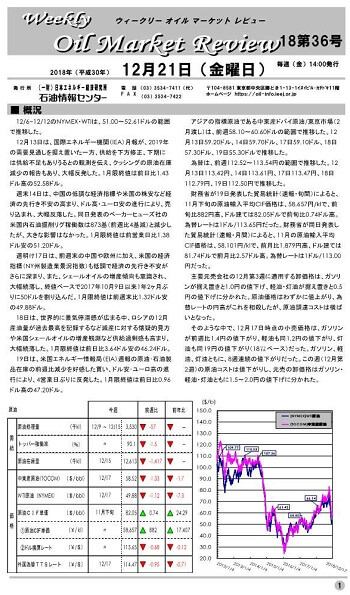 12/6~12/12のNYMEX・WTIは、51.00~52.61ドルの範囲で推移した。