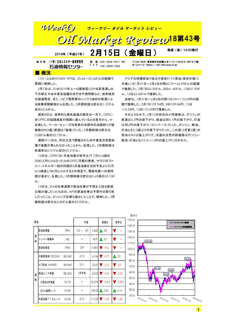 1/31~2/6のNYMEX・WTIは、53.66~55.26の範囲で堅調に推移した。