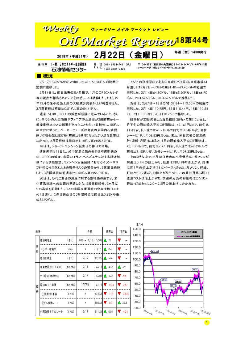 2月14日は、前日発表のIEA月報で、1月のOPEC・カナダ等の減産が報告されたことを好感し、3日続伸した。ただ、昨年12月の米小売売上高の大幅減少発表が上げ幅を抑えた。3月限終値は前日比0.51ドル高の54.41ドル。…