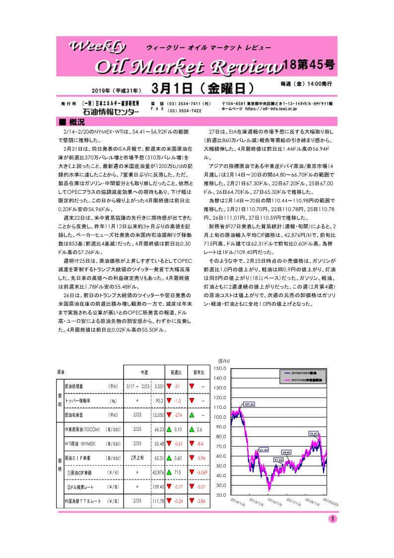 2/14~2/20のNYMEX・WTIは、54.41~56.92ドルの範囲で堅調に推移した。
