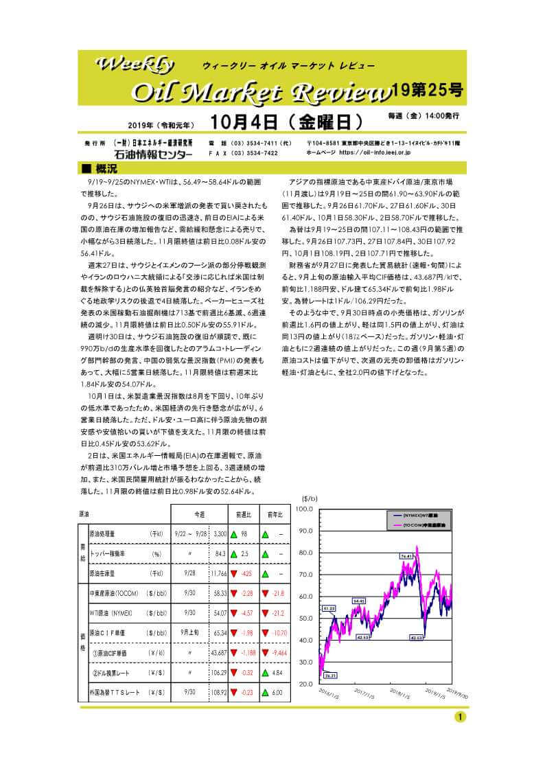 9/19~9/25のNYMEX・WTIは、56.49~58.64ドルの範囲で推移した。