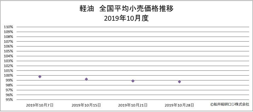 ※当グラフは、一般財団法人日本エネルギー経済研究所 石油情報センター発表の一般小売価格調査「給油所ガソリン・軽油・灯油」をもとに船井総研ロジ株式会社にて作成。
