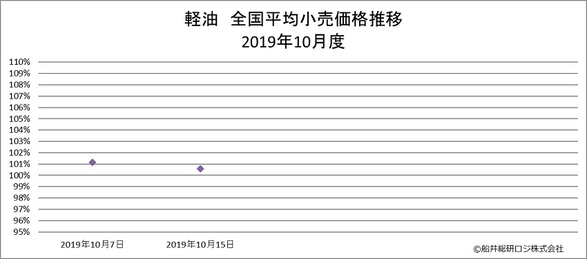 ※当グラフは、一般財団法人日本エネルギー経済研究所 石油情報センター発表の一般小売価格調査「給油所ガソリン・軽油・灯油」をもとに船井総研ロジ株式会社にて作成。