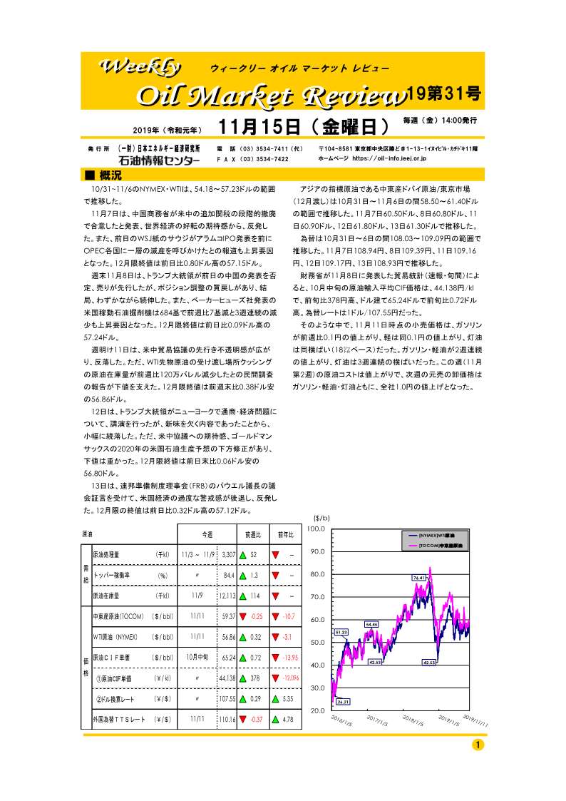 石油に関する情報を様々な形で提供している「一般財団法人日本エネルギー研究所石油情報センター」による、最新石油市場動向に関するプレスリリースです。