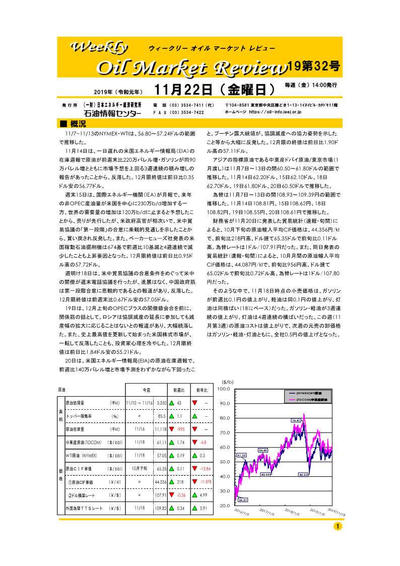 石油に関する情報を様々な形で提供している「一般財団法人日本エネルギー研究所石油情報センター」による、最新石油市場動向に関するプレスリリースです。