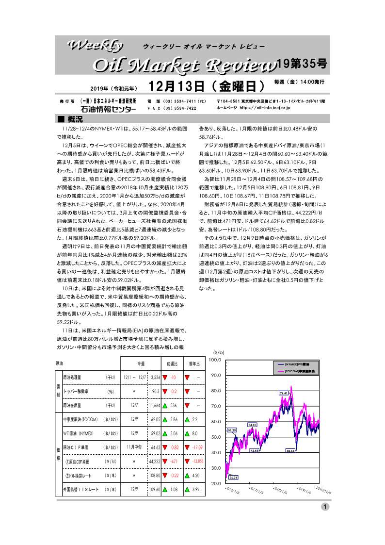 11/28~12/4のNYMEX・WTIは、55.17~58.43ドルの範囲で推移した。