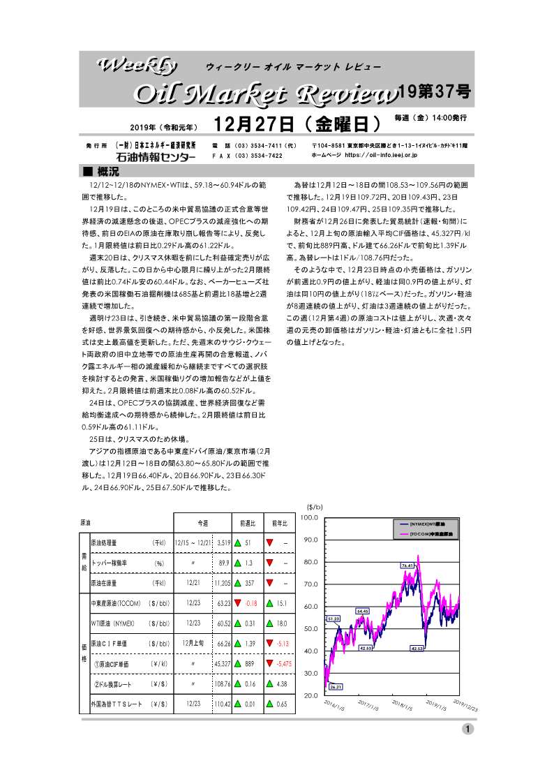12/12~12/18のNYMEX・WTIは、59.18~60.94ドルの範囲で推移した。