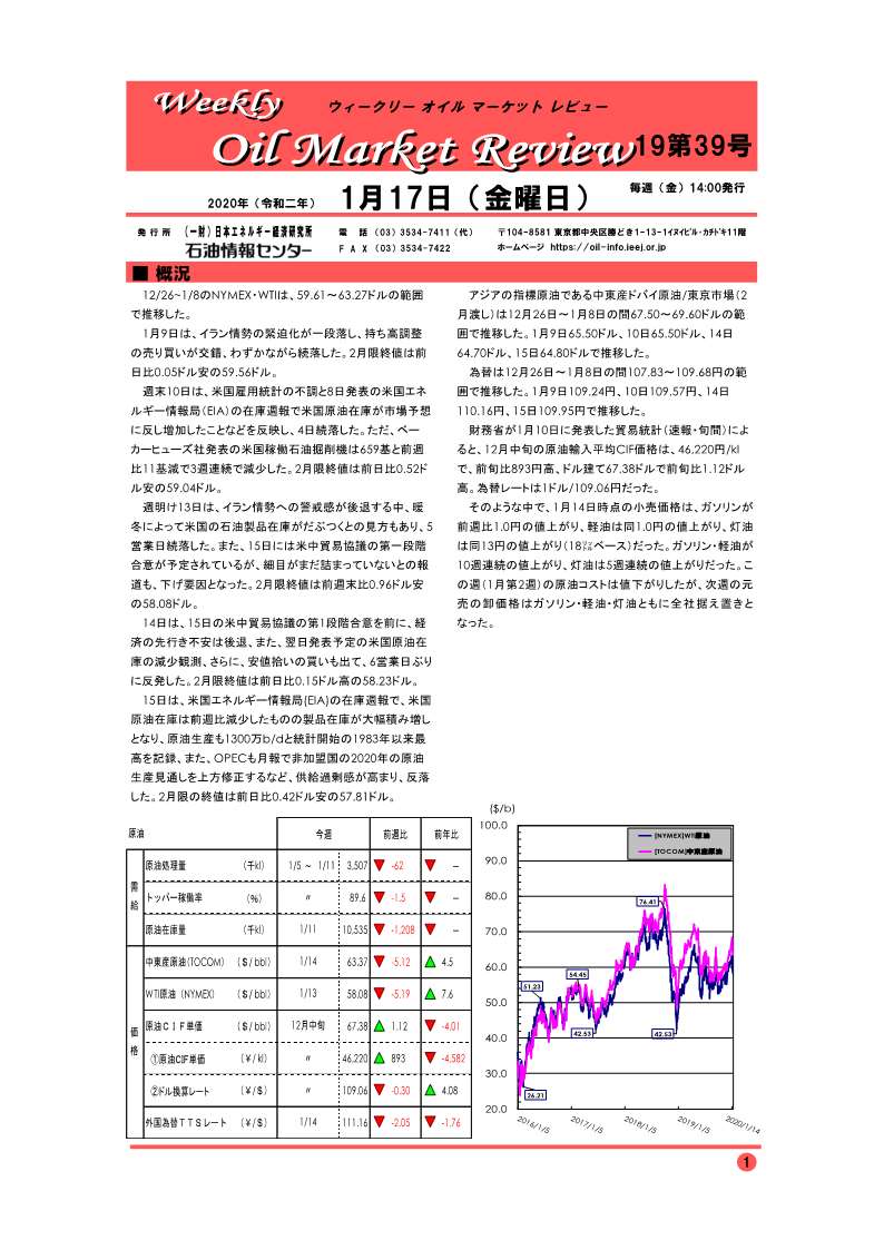 12/26~1/8のNYMEX・WTIは、59.61~63.27ドルの範囲で、推移した