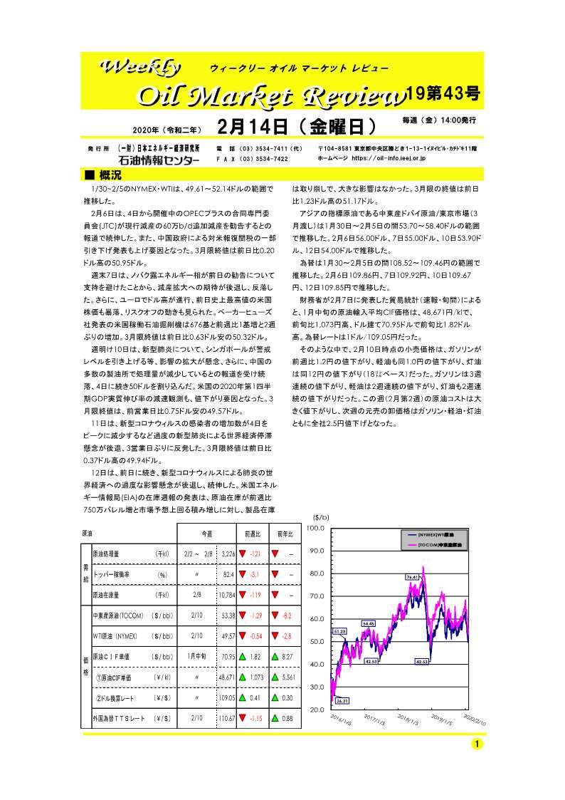 1/30~2/5のNYMEX・WTIは、49.61~52.14ドルの範囲で推移した。