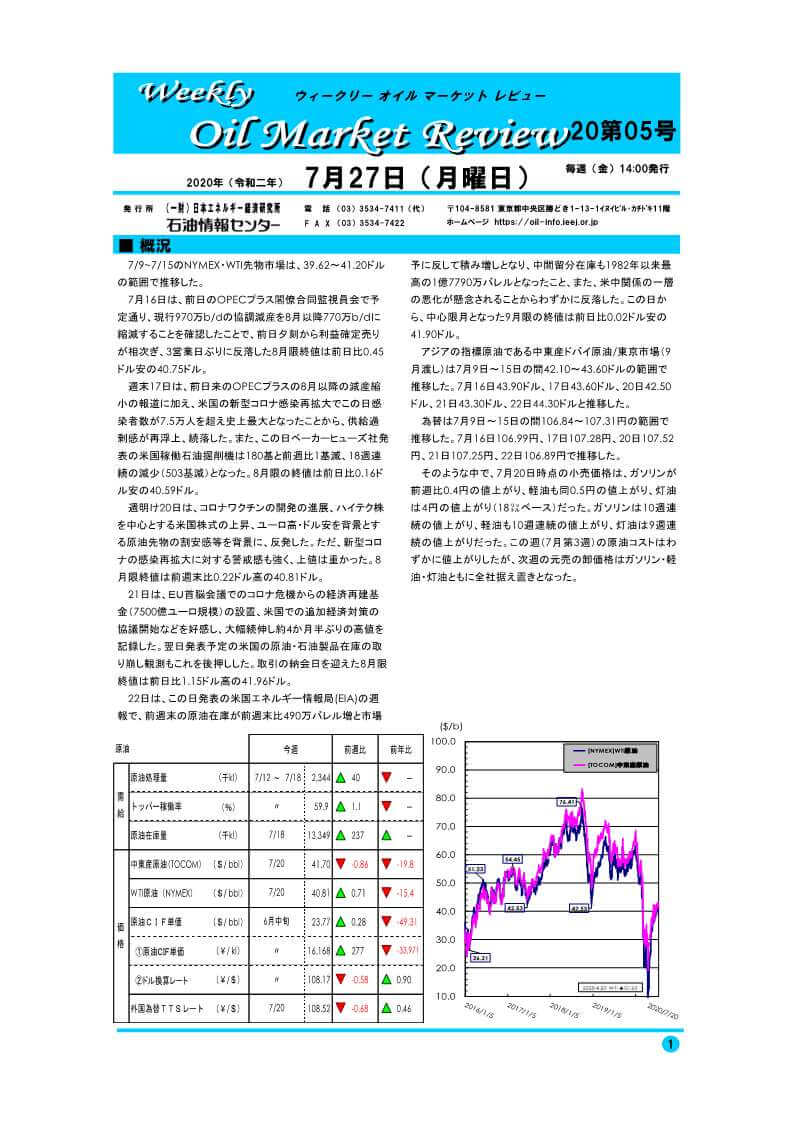 7/9~7/15のNYMEX・WTI先物市場は、39.62~41.20ドルの範囲で推移した。