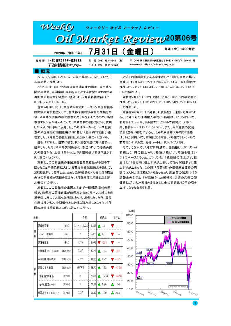 7/16~7/22のNYMEX・WTI先物市場は、40.59~41.96ドルの範囲で推移した。