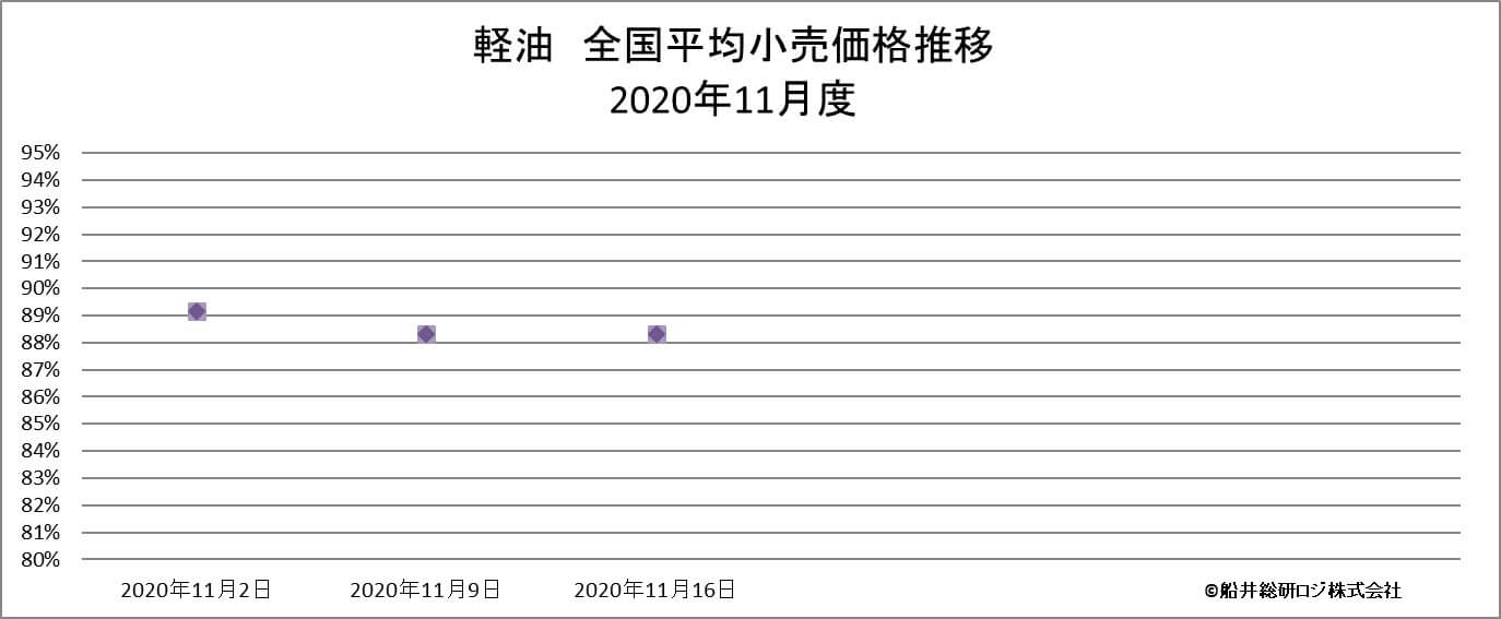 ※当グラフは、一般財団法人日本エネルギー経済研究所 石油情報センター発表の一般小売価格調査「給油所ガソリン・軽油・灯油」をもとに船井総研ロジ株式会社にて作成。