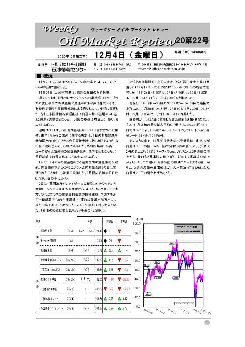 石油に関する情報を様々な形で提供している「一般財団法人日本エネルギー研究所石油情報センター」による、最新石油市場動向に関するプレスリリースです。