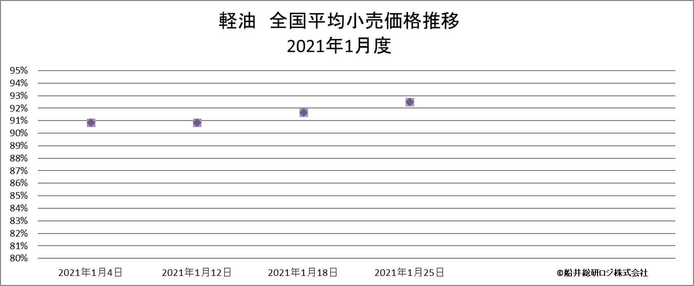 ※当グラフは、一般財団法人日本エネルギー経済研究所 石油情報センター発表の一般小売価格調査「給油所ガソリン・軽油・灯油」をもとに船井総研ロジ株式会社にて作成。