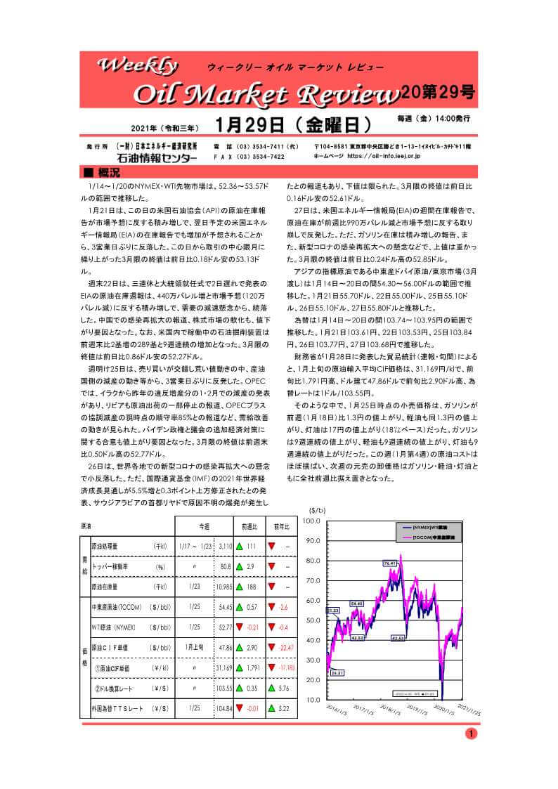 1/14~1/20のNYMEX・WTI先物市場は、52.36~53.57ドルの範囲で推移した。