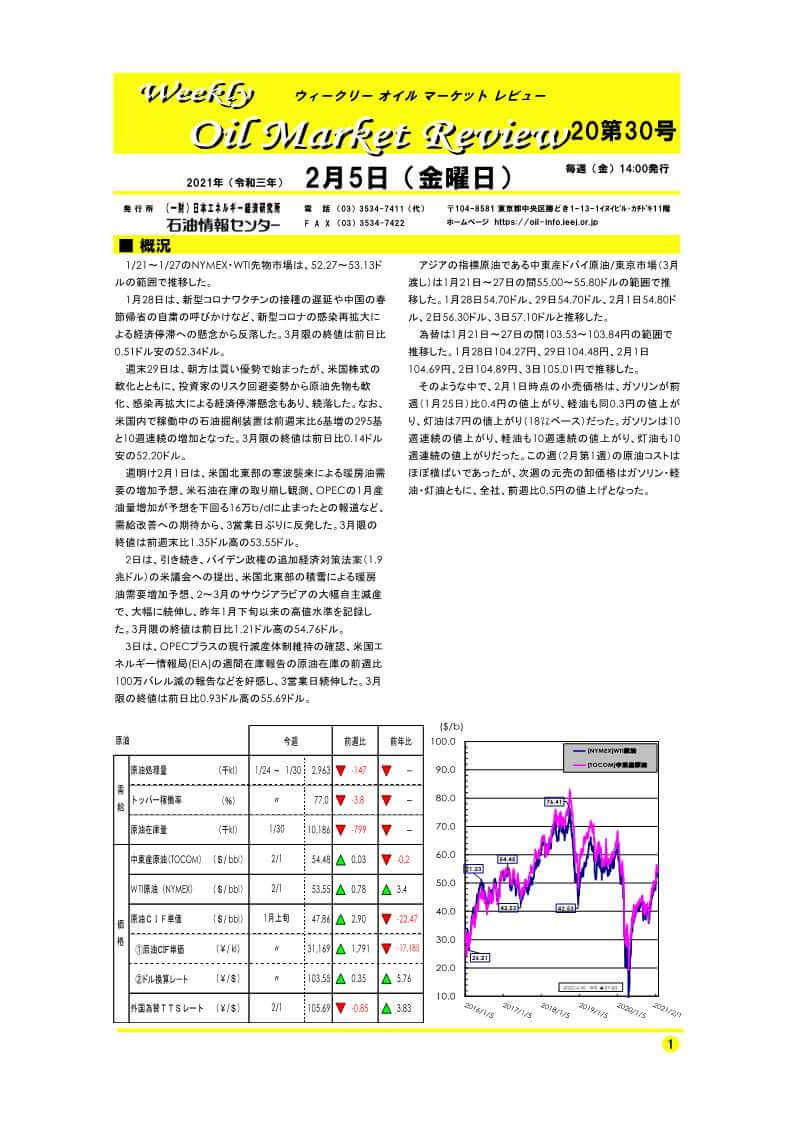 1/21~1/27のNYMEX・WTI先物市場は、52.27~53.13ドルの範囲で推移した。