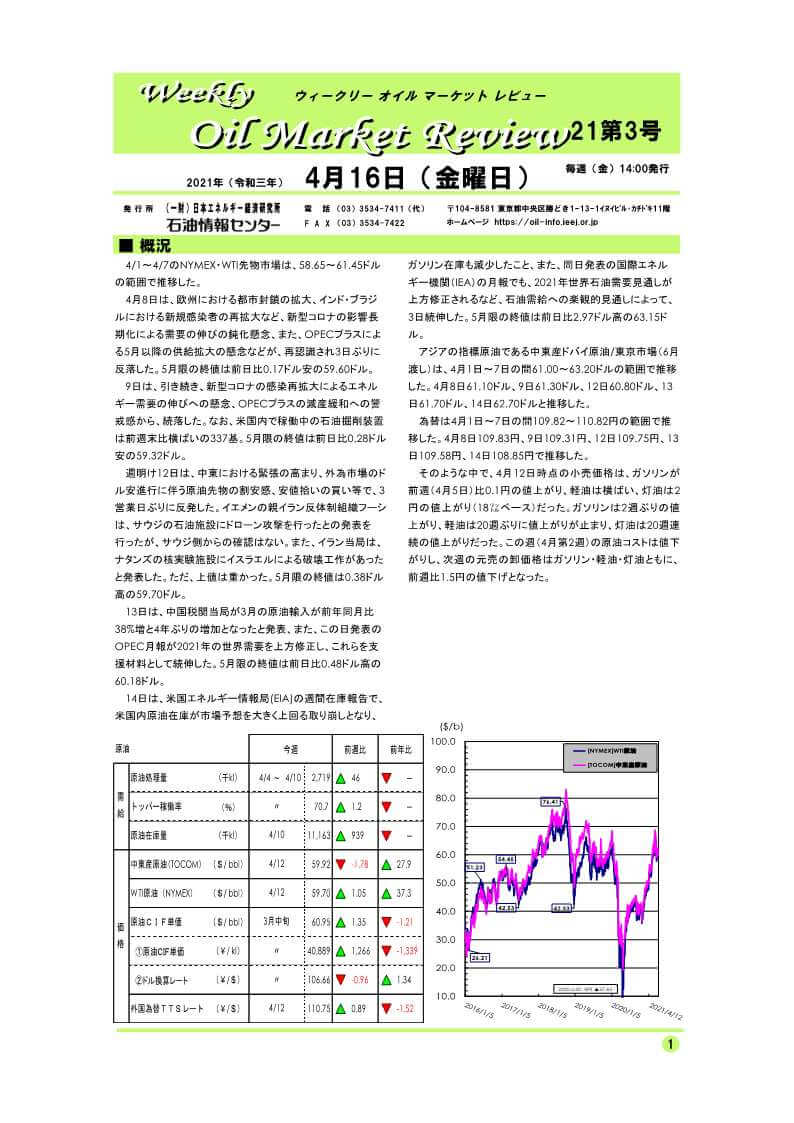 石油に関する情報を様々な形で提供している「一般財団法人日本エネルギー研究所石油情報センター」による、最新石油市場動向に関するプレスリリースです。