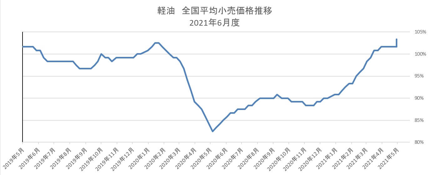 ※当グラフは、一般財団法人日本エネルギー経済研究所 石油情報センター発表の一般小売価格調査「給油所ガソリン・軽油・灯油」をもとに船井総研ロジ株式会社にて作成。