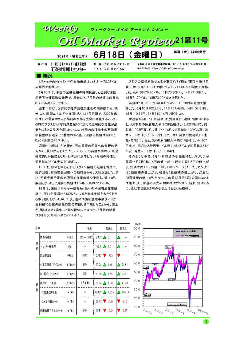 石油に関する情報を様々な形で提供している「一般財団法人日本エネルギー研究所石油情報センター」による、最新石油市場動向に関するプレスリリースです。
