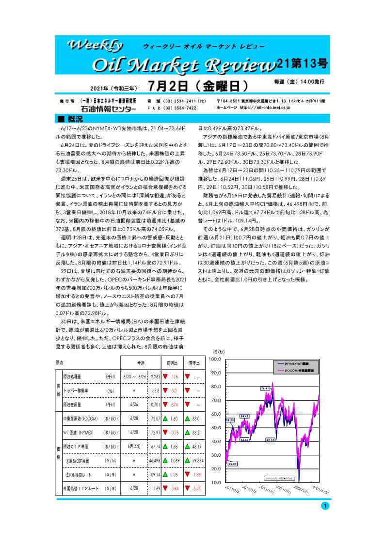 6/17~6/23のNYMEX・WTI先物市場は、71.04~73.66ドルの範囲で推移した。