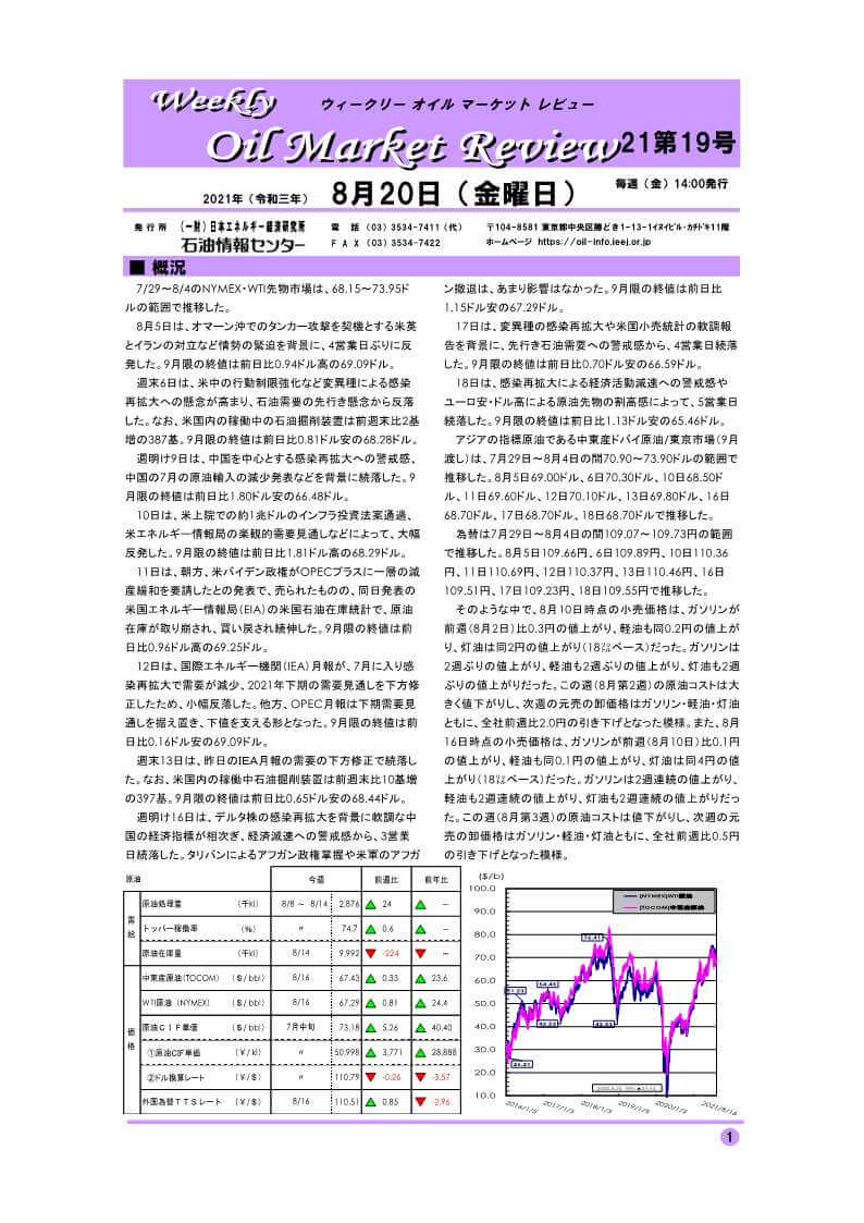 石油に関する情報を様々な形で提供している「一般財団法人日本エネルギー研究所石油情報センター」による、最新石油市場動向に関するプレスリリースです。
