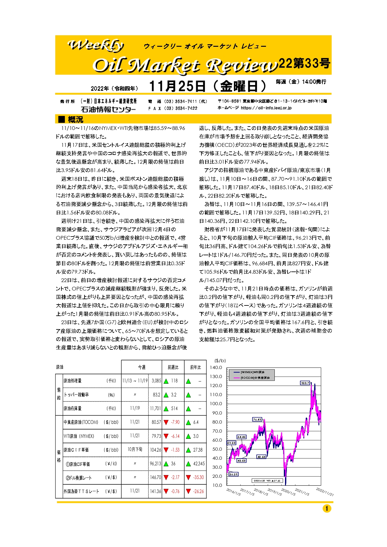石油に関する情報を様々な形で提供している「一般財団法人日本エネルギー研究所石油情報センター」による、最新石油市場動向に関するプレスリリースです。