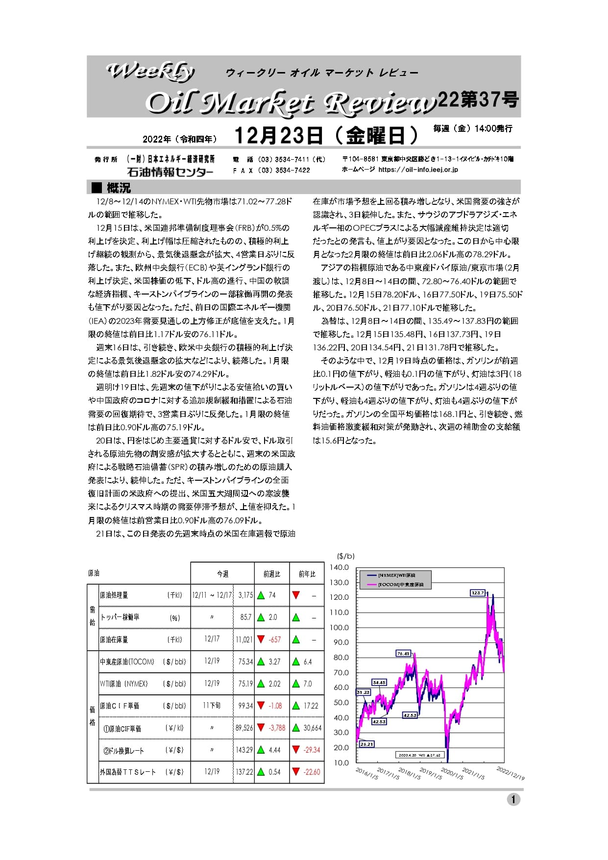石油に関する情報を様々な形で提供している「一般財団法人日本エネルギー研究所石油情報センター」による、最新石油市場動向に関するプレスリリースです。