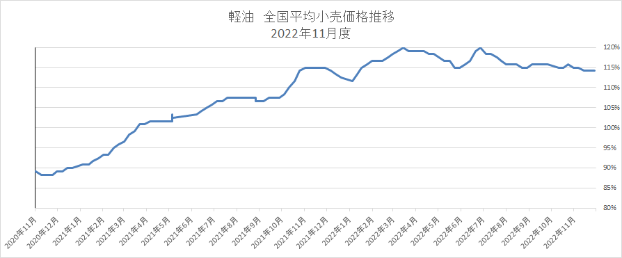 ※当グラフは、一般財団法人日本エネルギー経済研究所 石油情報センター発表の一般小売価格調査「給油所ガソリン・軽油・灯油」をもとに船井総研ロジ株式会社にて作成。