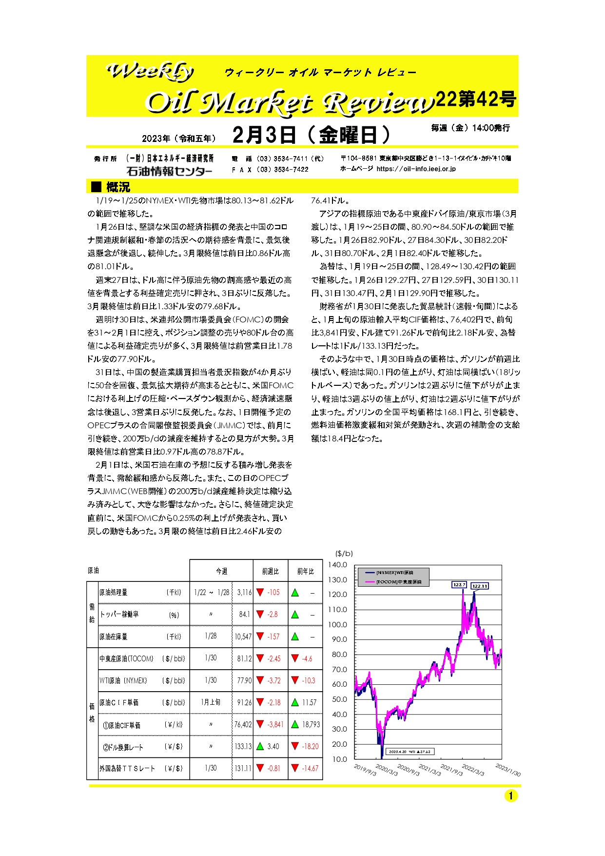 発行:一般財団法人日本エネルギー経済研究所石油情報センター