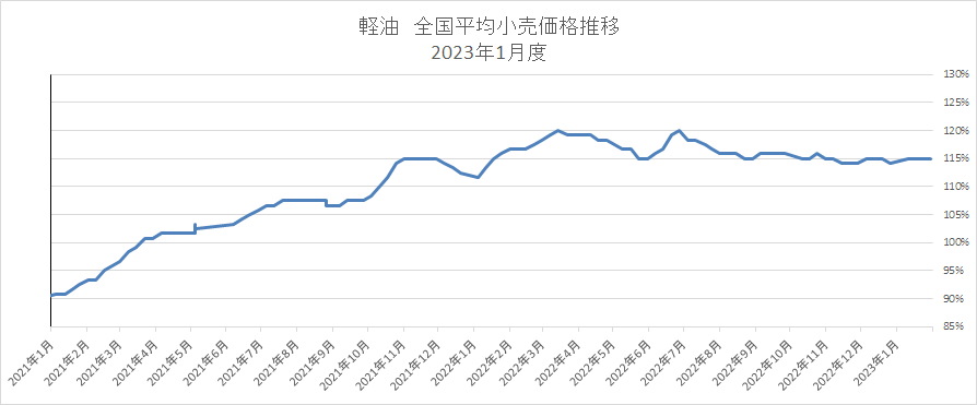※当グラフは、一般財団法人日本エネルギー経済研究所 石油情報センター発表の一般小売価格調査「給油所ガソリン・軽油・灯油」をもとに船井総研ロジ株式会社にて作成。