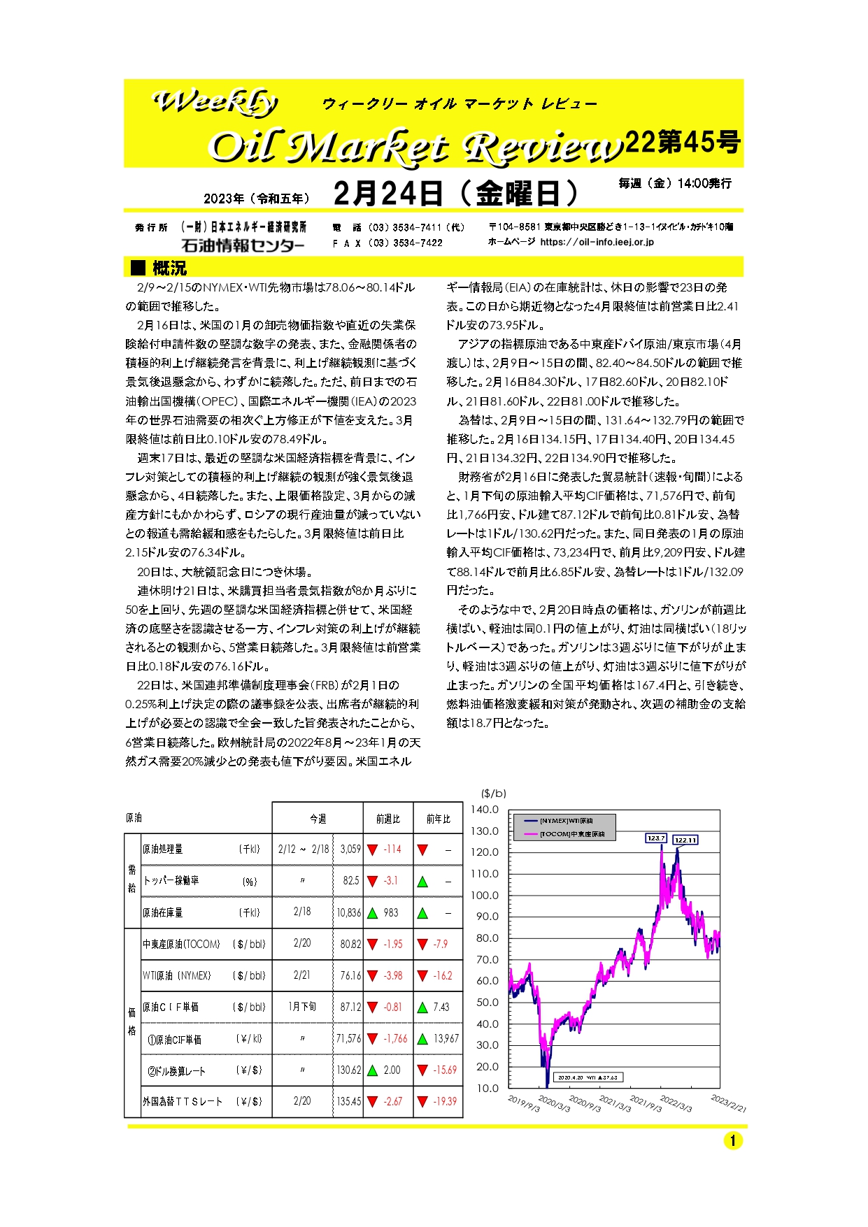 石油に関する情報を様々な形で提供している「一般財団法人日本エネルギー研究所石油情報センター」による、最新石油市場動向に関するプレスリリースです。