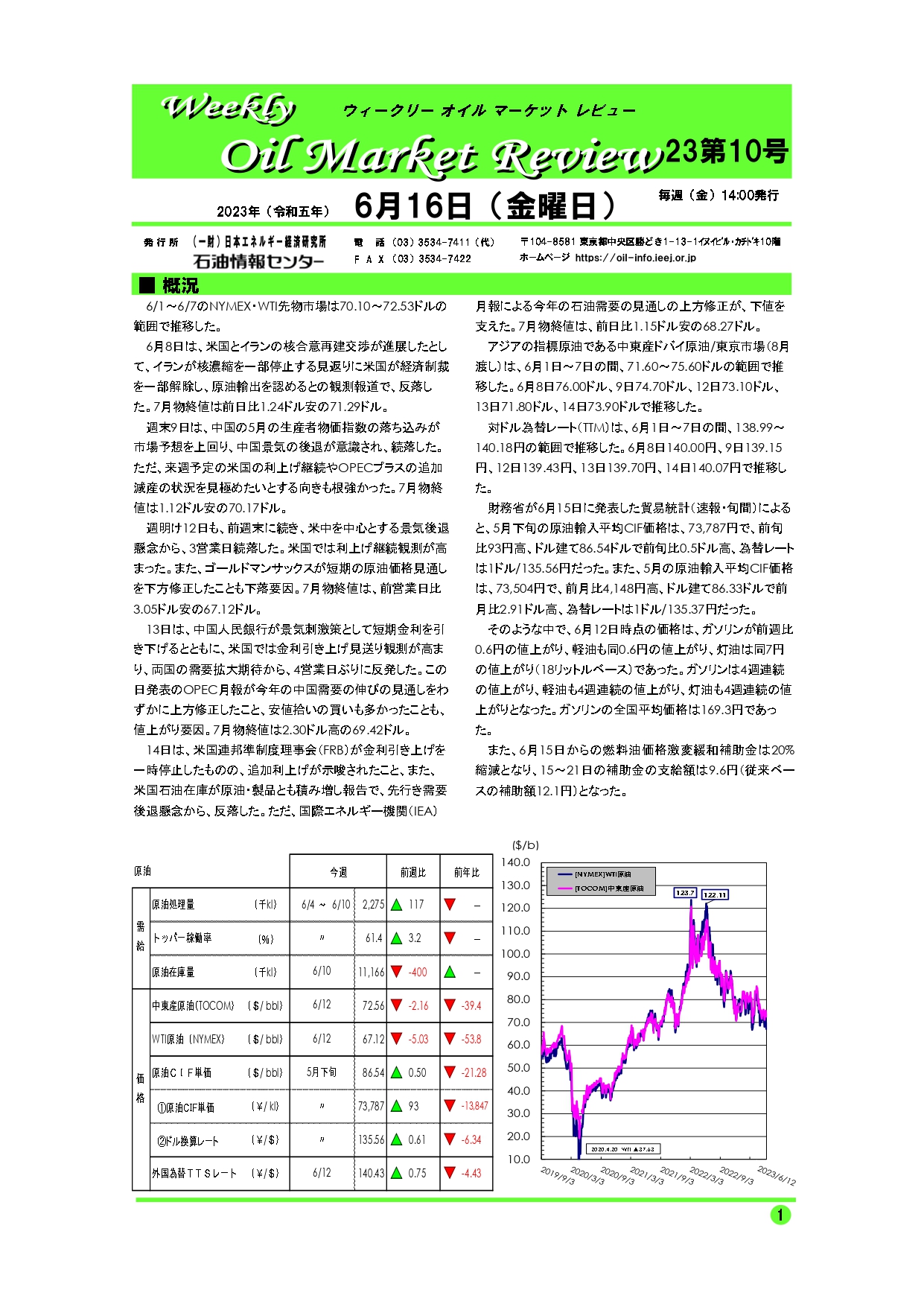 石油に関する情報を様々な形で提供している「一般財団法人日本エネルギー研究所石油情報センター」による、最新石油市場動向に関するプレスリリースです。