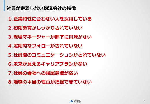 またそれだけでなく、右図は社員が定着しない物流会社の特徴です。
