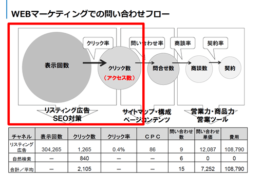 新規顧客獲得につながる問い合わせ数を稼ぐためには、ウェブサイトへのアクセス数が非常に重要です。アクセス数を増やすには、コストはかかるが効果の即効性を求める場合はリスティング広告が適しています。