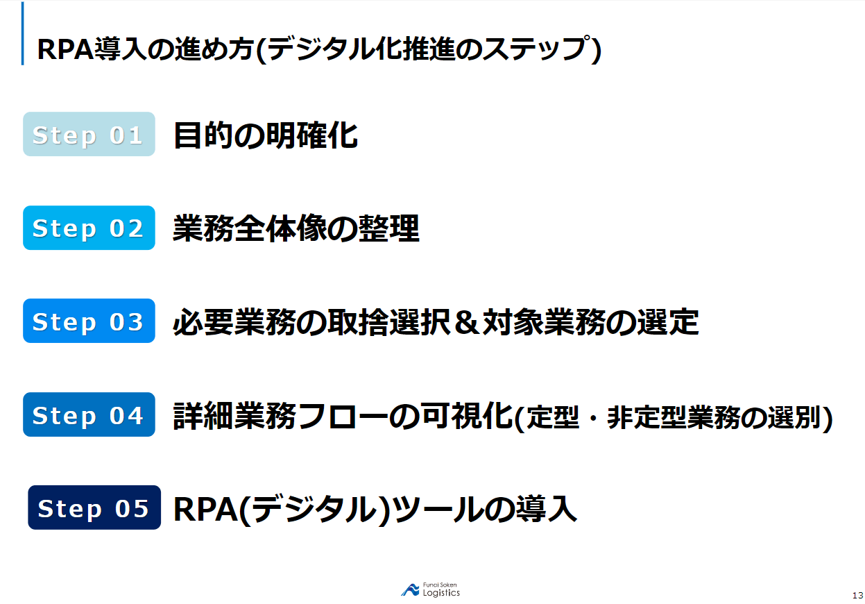 それゆえ、RPA導入のステップとして、まずは目的の明確化をすることと業務全体像の整理が必要となります。