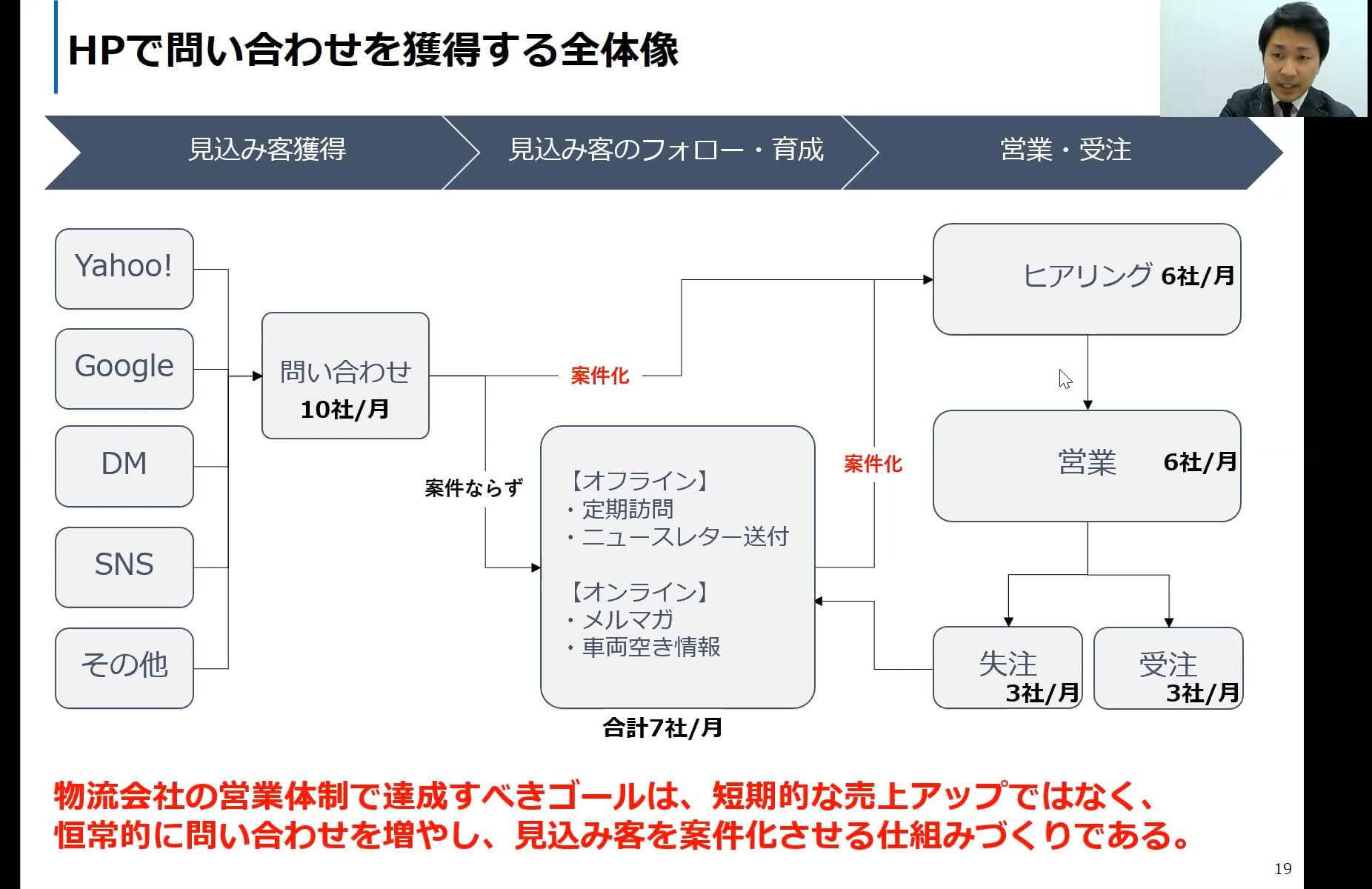 物流会社の営業体制では、特に案件化に繋がらなかったお客様への、フォローや育成が非常に大切です。