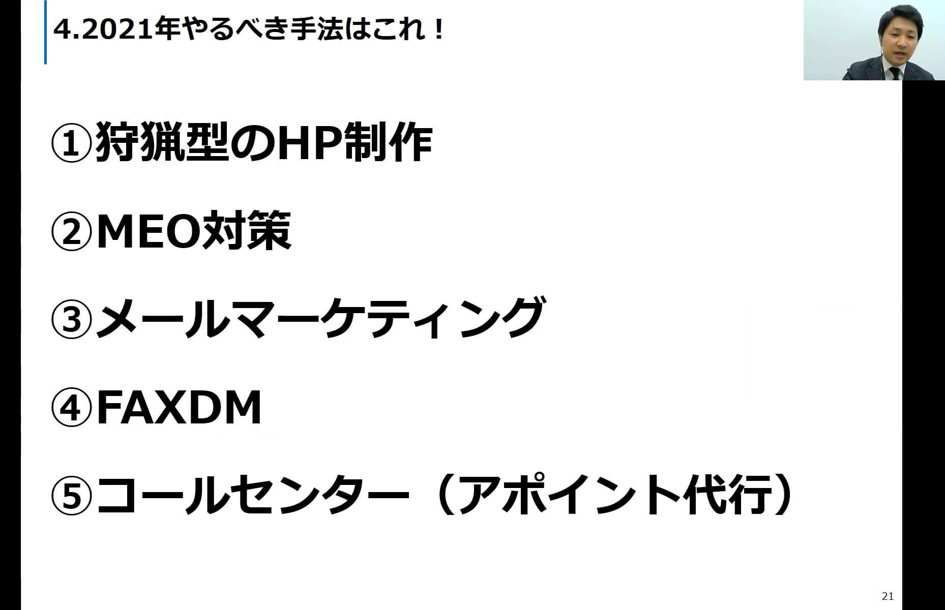 2020年10月に小規模運送会社向けホームページ立上・運用サービス「俺のホームページ」をリリースいたしました。そのリリース記念として、「2021年売上が倍増する手法はこれだ!WEBマーケティング最新事例大公開セミナー」を開催し、コロナ禍でも業績を落とさなかった運送会社は何をしていたのか、徹底解説しました。