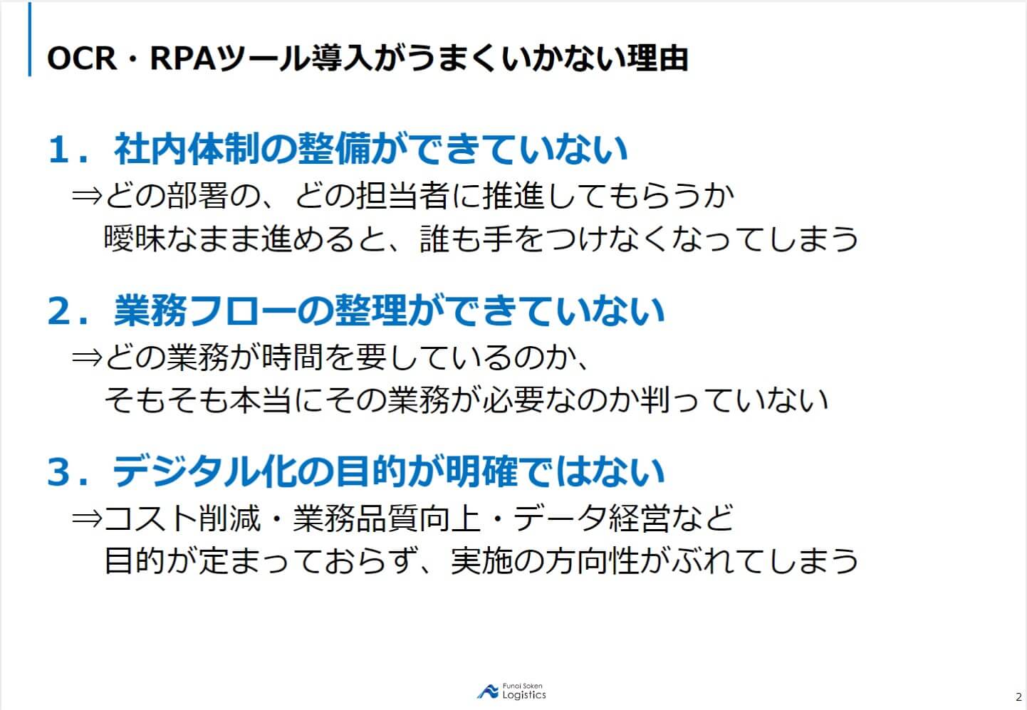 第三講座では、船井総研ロジ 齊藤より「RPA・OCRを効果的に活用するためには」と題しまして、RPA・OCRを導入する上でのポイントをお伝えしました。