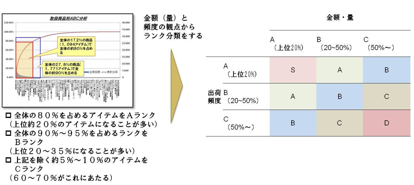 すべての商品が同じ動きをするわけではありません。金額(量)と頻度の観点からランク分類を行い、特性にあわせてコントロール方法も使い分けましょう。