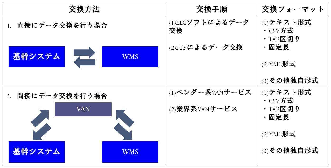 インターフェイスの通信手段は大きく分けて2つに分類されます。直接データ交換を行なう場合と間接的(VAN経由)にデータ交換を行なう場合があります。