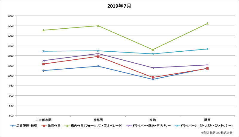 ※当グラフは、株式会社リクルートジョブズ発表の「アルバイト・パート募集時平均時給調査データ」をもとに、船井総研ロジ株式会社にて作成。
