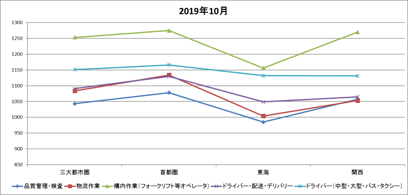 各種レポート 物流関連のアルバイト・パート賃金時給調査データ 2019年10月 2019年10月 ※当グラフは、株式会社リクルートジョブズ発表の「アルバイト・パート募集時平均時給調査データ」をもとに、船井総研ロジ株式会社にて作成。 出典:「アルバイト・パート募集時平均時給調査データ」(株式会社リクルートジョブズ) PICK UP 荷主のための2025年下期 物流時流 完全攻略5点セット 物流企業の時流適応戦略2025 業界環境大激変!企業永続のための成長性の追求 週間閲覧ランキング RANKING 人気の記事