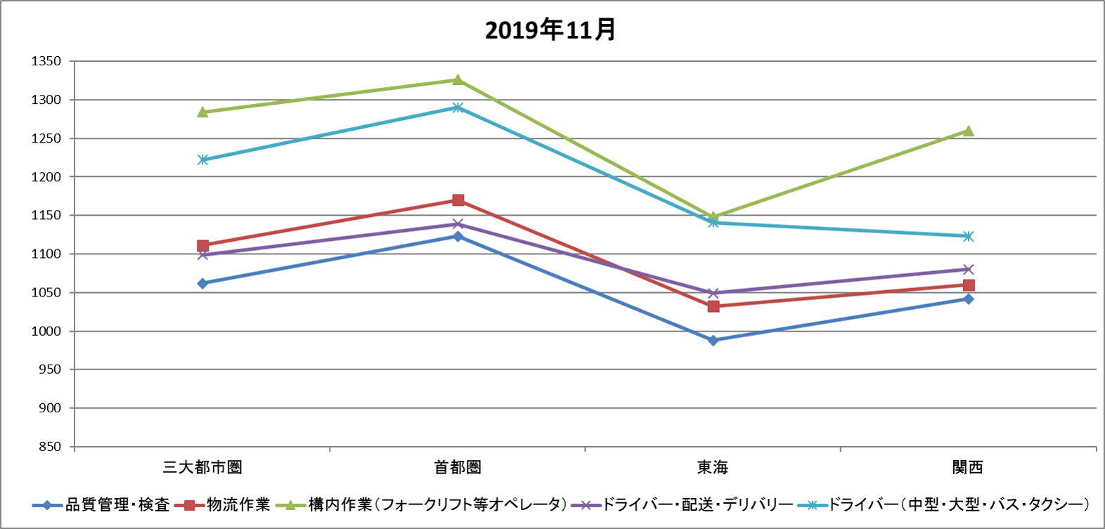 各種レポート 物流関連のアルバイト・パート賃金時給調査データ 2019年11月 2019年11月 ※当グラフは、株式会社リクルートジョブズ発表の「アルバイト・パート募集時平均時給調査データ」をもとに、船井総研ロジ株式会社にて作成。 出典:「アルバイト・パート募集時平均時給調査データ」(株式会社リクルートジョブズ) PICK UP 荷主のための2025年下期 物流時流 完全攻略5点セット 物流企業の時流適応戦略2025 業界環境大激変!企業永続のための成長性の追求 週間閲覧ランキング RANKING 人気の記事