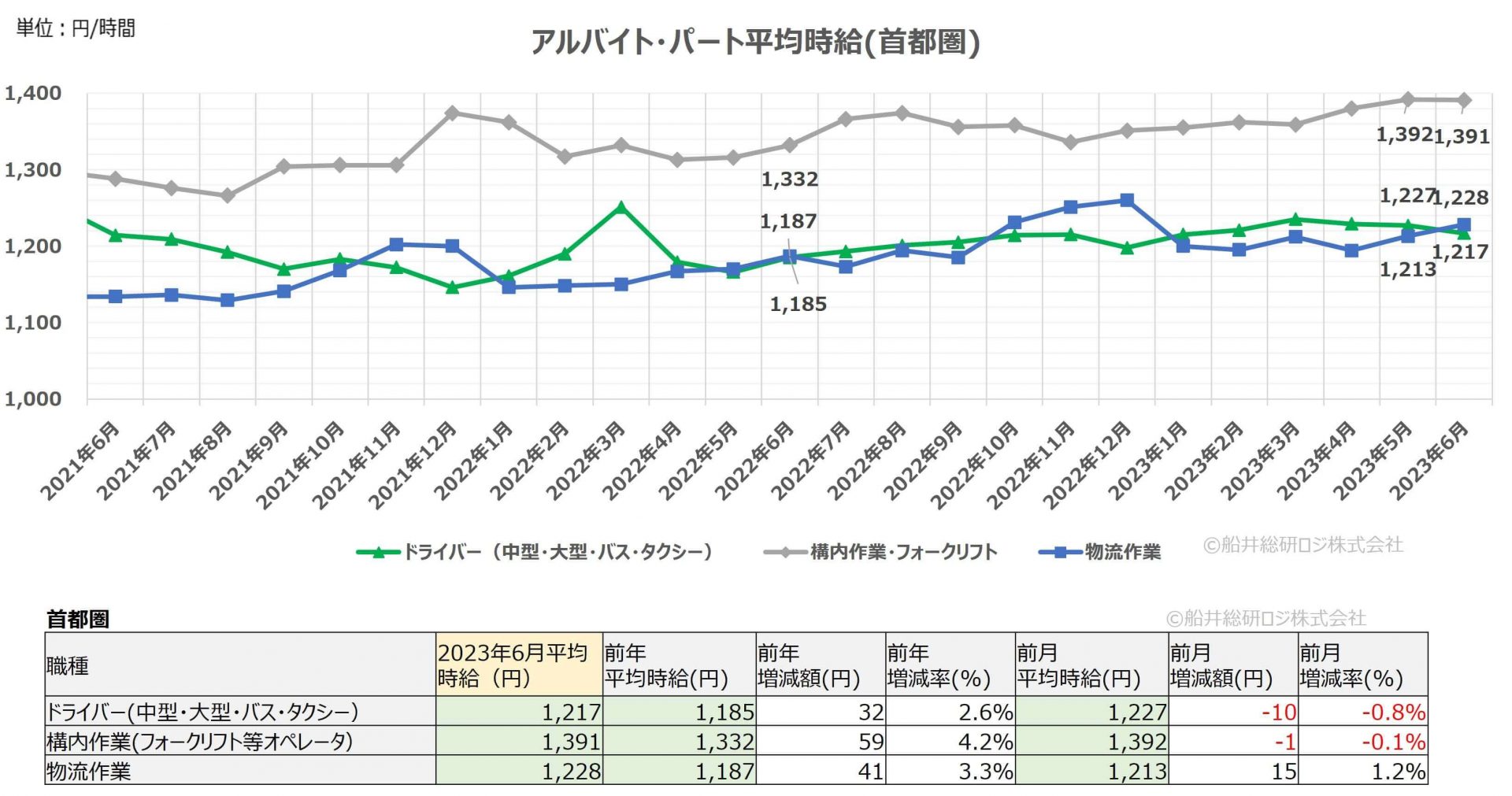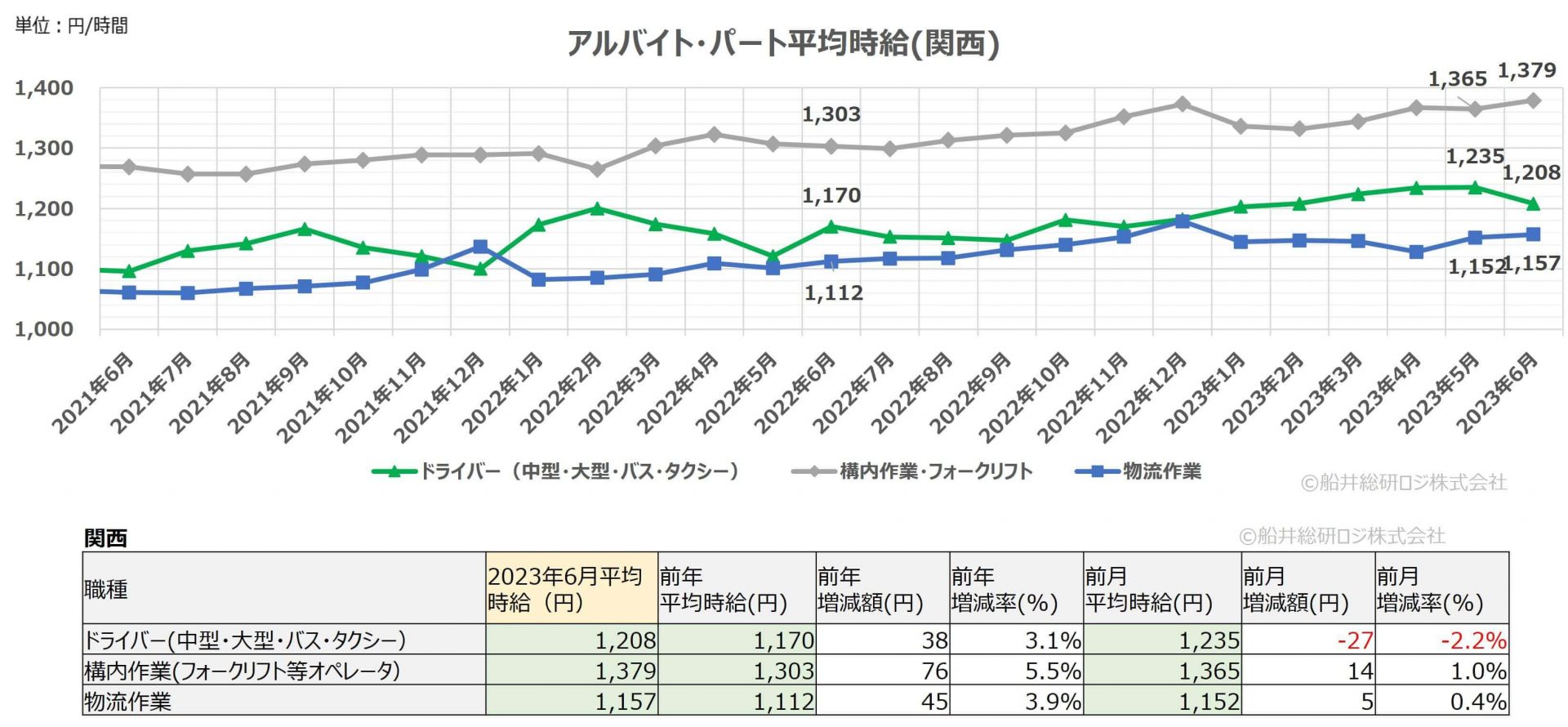 物流関連のアルバイト・パート賃金時給調査データ 2023年6月